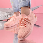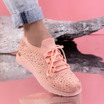 Дамски маратонки Siri - Pink са лек и много удобен модел, изработен от текстил и декориран с камъни и дебелина на подметката - 3,5 см.