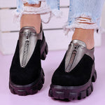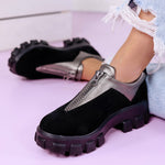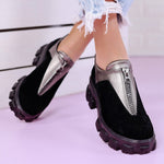 Дамски обувки Flaviya - Gun са за всяка елегантна дама, търсеща удобството в своето ежедневие. Изчистени линии от еко велур и еко кожа и декорация цип, нека бъдат акцента във вашата визия.