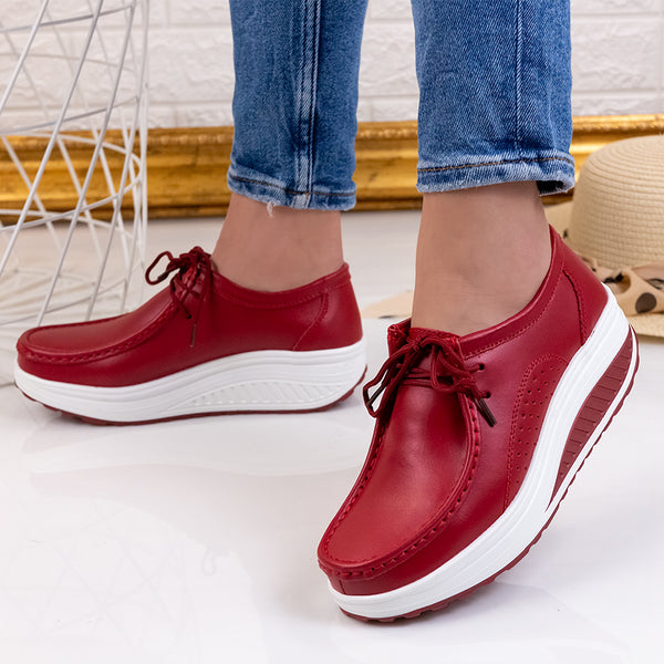 Дамски обувки Leta - Red са много удобен модел с ортопедична подметка, изработен от естествена кожа с дебелина на подметката - 5 см.