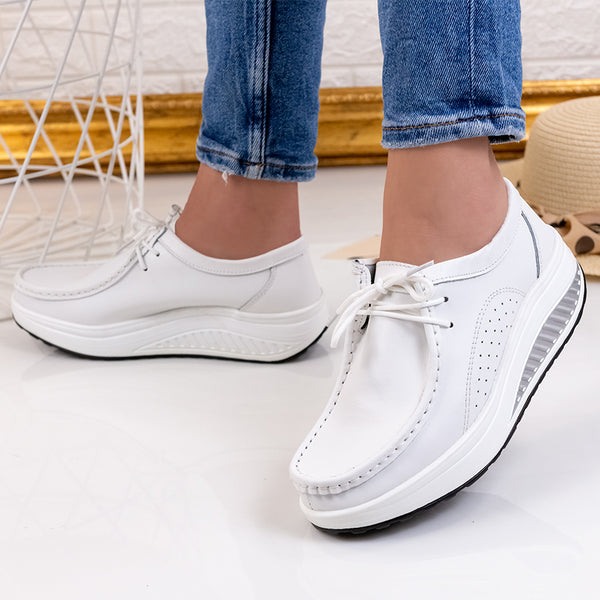Дамски обувки Leta - White са много удобен модел с ортопедична подметка, изработен от естествена кожа с дебелина на подметката - 5 см.