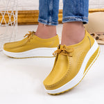 Дамски обувки Leta - Yellow са много удобен модел с ортопедична подметка, изработен от естествена кожа с дебелина на подметката - 5 см.