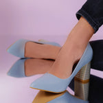 Дамски обувки на ток Mirian - Blue са перфектни за Вас! Материала е еко кожа,а тока е 7,5 см.