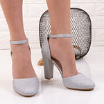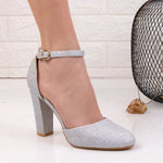 Дамски обувки на ток Orelia - Silver са елегантен модел, изработен от еко кожа с брокат и височина на тока - 10 см.