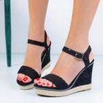 Дамски сандали Avy - Black са удобен модел на платформа, подходящ за ежедневна и по-елегантна визия. Изработени са от еко велур с височина на платформата - 11 см.