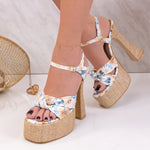 Дамски сандали на ток Avona - Beige са елегантен модел със стабилен ток, изработен от еко кожа. Височината на тока е 14 см, а платформата - 5 см.
